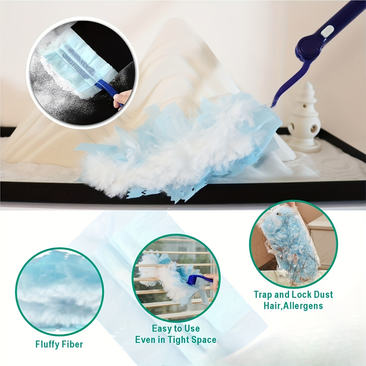 200pcs Disposable Duster Refills Tools Kit Include 1 Handles, Electrostatic Duster Cloths Replacement, Effortless Dust Removal for Electronics, Furniture, Blinds, And Ceiling Fans, Home Dust Cleaning Accessories